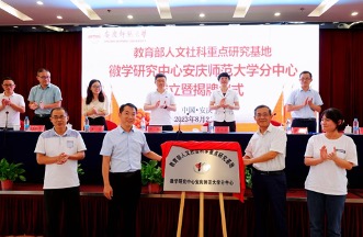 周晓光和张红飞共同为教育部人文社科重点研究基地徽学研究中心安庆师范大学分中心揭牌。