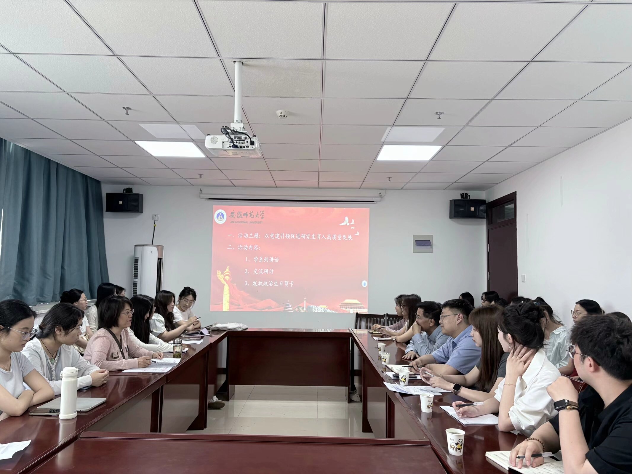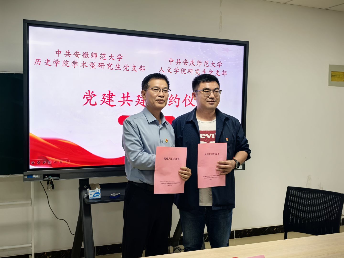 三个党支部以“党建引领促进研究生育人高质量发展”为主题展开,与会各党支部就深入贯彻中央八项规定精神学习教育开展情况、样板支部建设、党建品牌建设、党员示范作用发挥等内容进行了深度交流。交流期间,beat365亚洲体育官方网站研究生党支部与安徽师范大学历史学院学术型研究生党支部共同签署了支部共建协议,beat365亚洲体育官方网站研究生党支部还向5月入党的党员同志发放了政治生日贺卡。