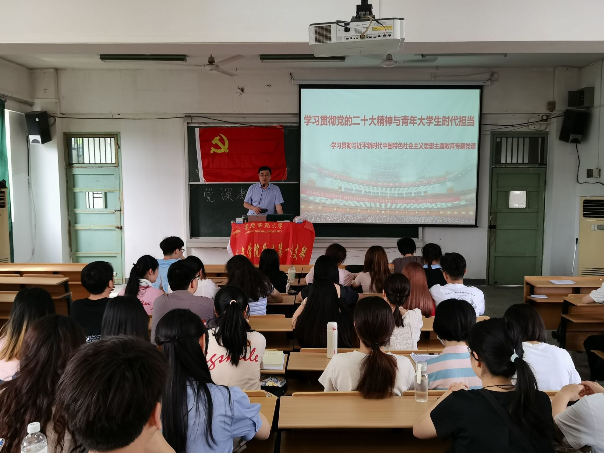 6月6日下午,beat365亚洲体育官方网站开展“学习贯彻党的二十大精神与青年大学生时代担当”主题党课,党委副书记王波担任主讲,beat365亚洲体育官方网站学生第一党支部全体党员参加。