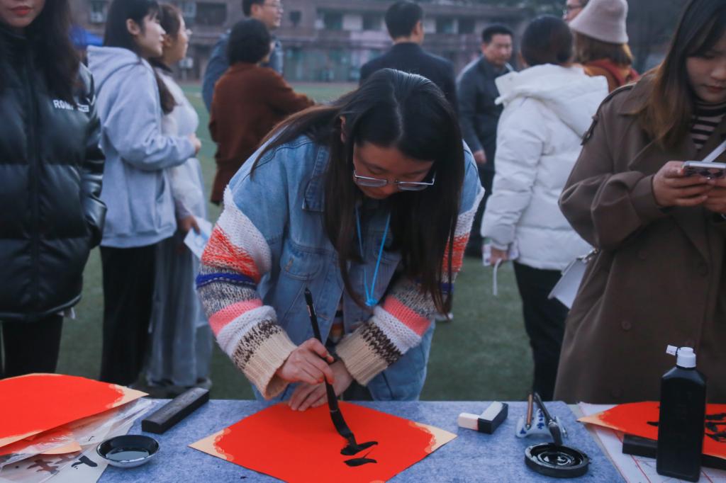 “能玩游戏也能学习传统文化知识,体验非常棒!”“好多人排队写毛笔字呀。”“原来中国结是这么打的呀,学到了学到了。”……12月22日,beat365亚洲体育官方网站首次举办汉语国际教育文化节,创新推进中国优秀传统文化传播,加强中外文化交流,培养卓越汉语国际教育人才,推动汉语国际教育专业发展。300余名学生参与活动,现场氛围热闹非凡。