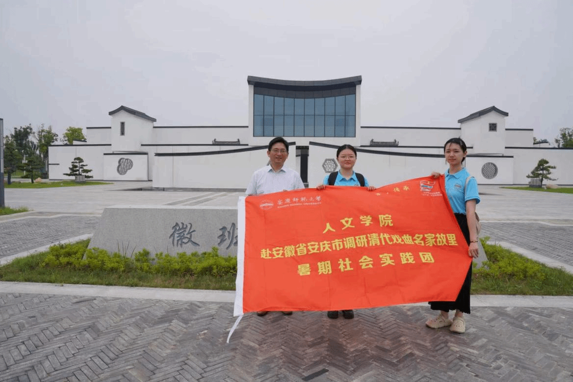 为了更好地了解安庆清代戏曲名家的活动情况,7月14日,安庆师范大学“青·传承”调研戏曲名家故里暑期社会实践团队的成员在指导老师叶当前教授的带领下,前往安庆市怀宁县石牌镇进行实地考察。团队成员先后考察了徽班博物馆的新旧两个展馆,在石牌老街探访了老一辈戏剧盔帽制作手艺人,了解了石牌戏剧小镇的规划及建设情况。