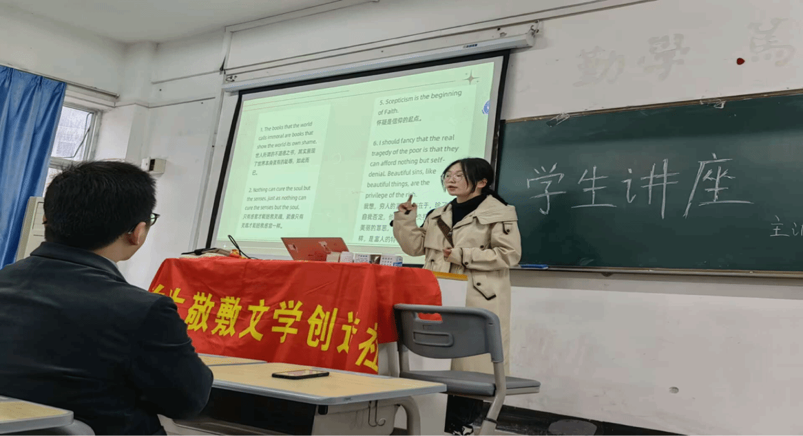 本次讲座不仅增进了同学们对美的理解,也了解了关于《道林·格雷的画像》艺术特色的相关内容。作为中文系学生,我们应该勤读书、多思考、常写作,大学生敬敷文学创造社鼓励社员举办学生讲座,通过自身实践分享心得体会,提高讲授能力。(撰稿:王园媛 摄影:韩永洁 审核:江飞 王波)
