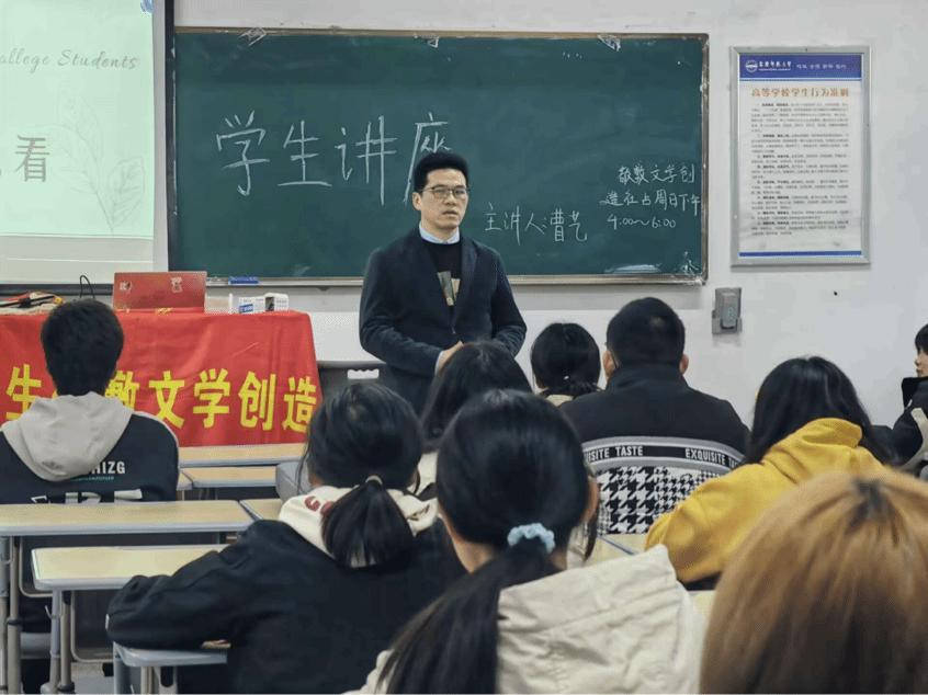 3月17日,大学生敬敷文学创造社在教学楼312室举办了以“《道林·格雷的画像》为艺术而艺术”为主题的第七期学生讲座。讲座由副社长曹艺主讲,指导老师江飞教授莅临现场指导。来自beat365亚洲体育官方网站的63位同学参加了本次活动。