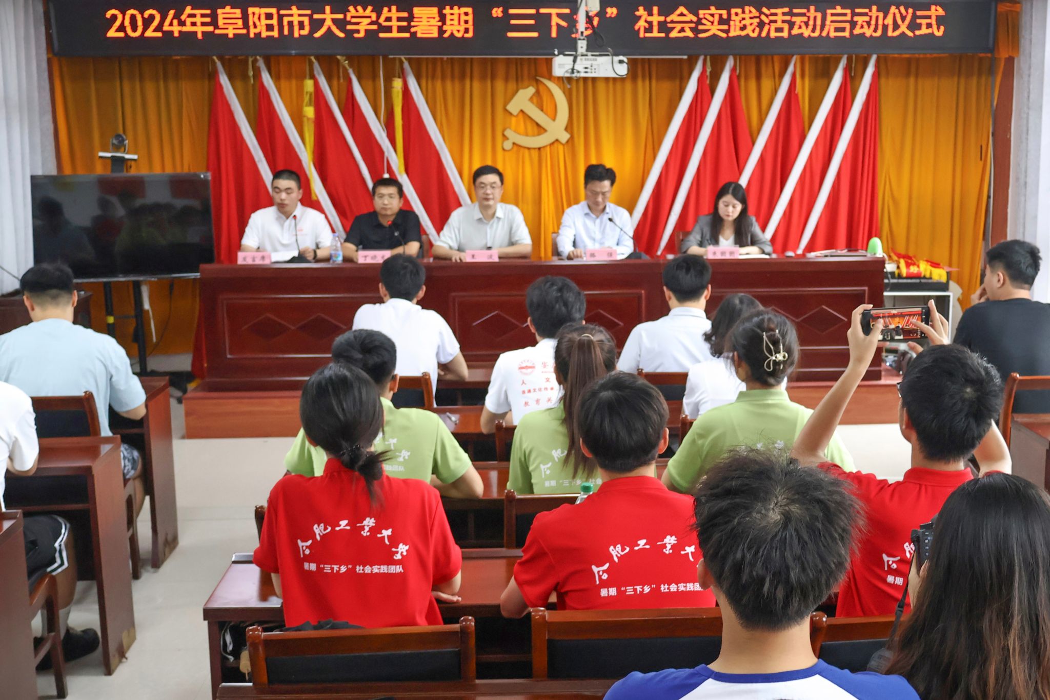 在阜期间,王波与团市委副书记骆强、团颍州区委书记朱囡囡共同出席2024年阜阳市大学生暑期“三下乡”社会实践活动启动仪式,并参加了“青年学子颍州行”暨大学生暑期“三下乡”社会实践活动交流座谈会。