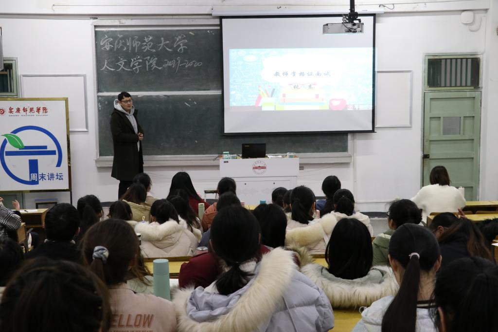 “你是如何备考教师资格证书的?是孤军奋战还是与室友共同备考?”12月23日下午,beat365亚洲体育官方网站在菱湖校区教学楼215教室开展了教资面试培训会,近百名学生一同聆听了这场培训会。