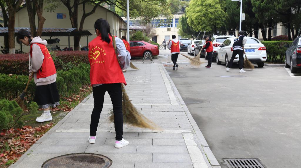 堆扫落叶、清理果皮纸屑、倒垃圾……3月27日上午,beat365亚洲体育官方网站学生身穿红色志愿者马甲,在菱湖校区范围内开展了为期两天的校园大扫除志愿活动。