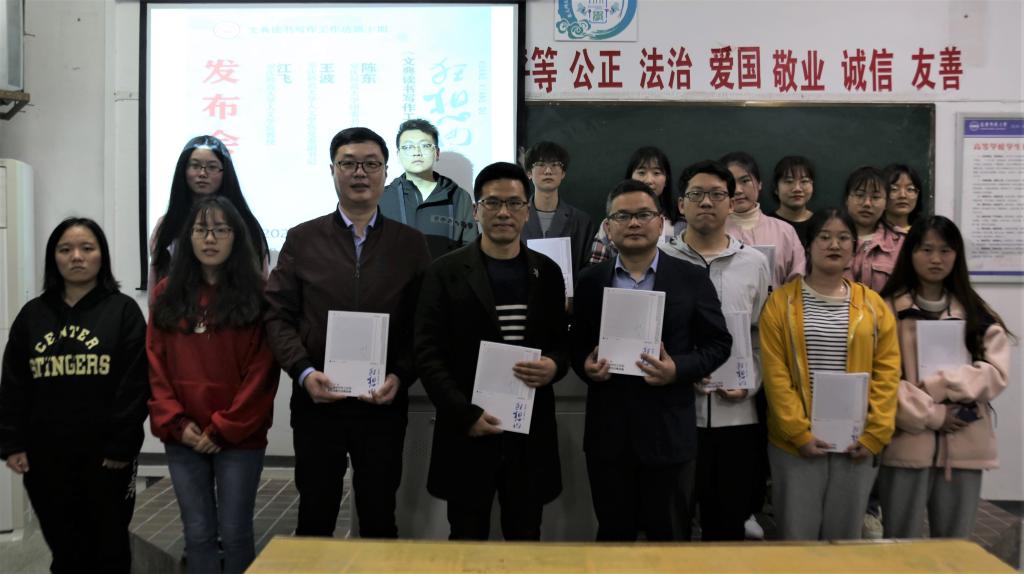 3月31日晚,文典读书写作工作坊在菱湖校区举办了《学员创意作品精选集》第十期“狂想曲”的发布会。发布会由beat365亚洲体育官方网站教授、文典读书写作工作坊指导教师江飞老师主持,校团委书记陈东、beat365亚洲体育官方网站党委副书记王波出席,《精选集》作者和工作坊学员参加了发布会。