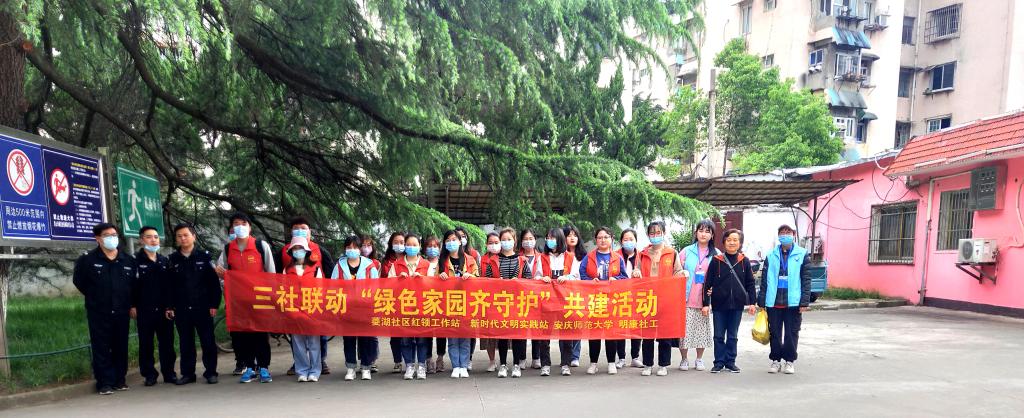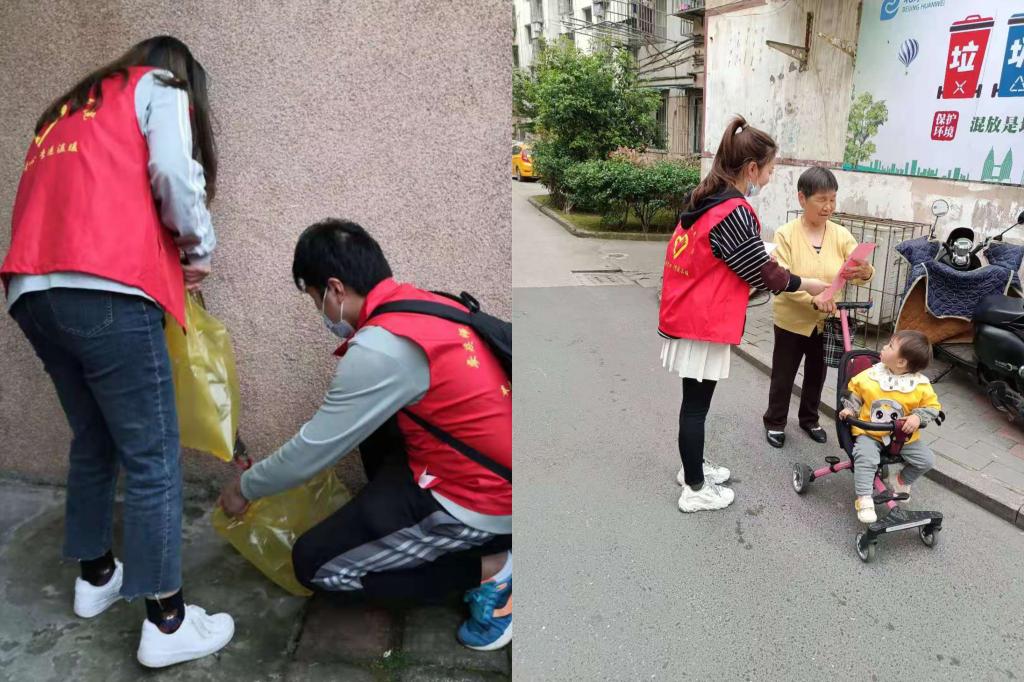 4月16日下午,beat365亚洲体育官方网站学生身穿红色志愿者马甲,在三社联动项目相关人员的带领下,走入菱湖社区参与“绿色家园齐守护”共建活动。