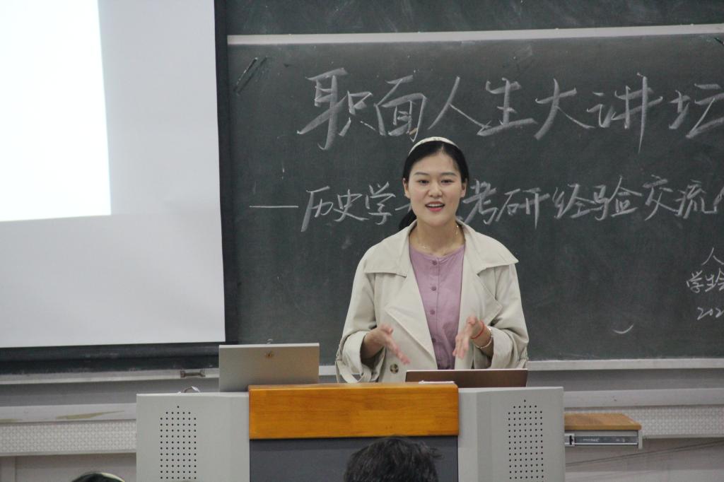 为搭建学习交流平台,帮助同学们实时了解考研信息,拓展就业渠道,提升就业质量,4月27日晚,人文学院“职”面人生大讲坛第三期——历史学专业考研经验交流会在教学楼315成功举办。历史学专业部分学生参与并认真聆听本次交流会。