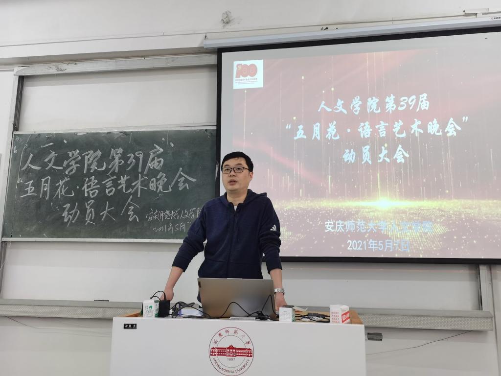 为保障第39届“五月花”语言艺术晚会顺利举办,5月7日中午,beat365亚洲体育官方网站组织召开相关动员布置大会。党委副书记王波、团委负责人及辅导员老师出席,beat365亚洲体育官方网站团委学生会全体成员、各节目组主要负责人及2019、2020级各班班长参与本次会议。