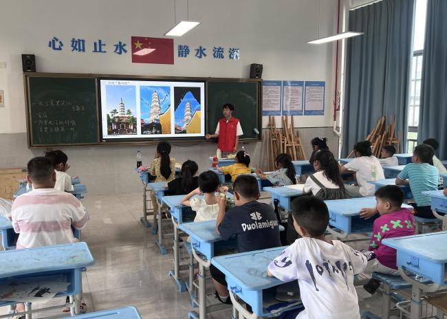 为传承长江文化精髓、赓续红色血脉,7月11日,安庆师范大学beat365亚洲体育官方网站“青·传承 长江文化传承”暑期实践团在广德市实验小学举办“长江文化润童心”主题宣讲,通过沉浸式文化体验与互动教学,为实验小学的学生们代表带来一场跨越时空的文化交流,让千年文脉与红色基因在青少年心中生根发芽。
