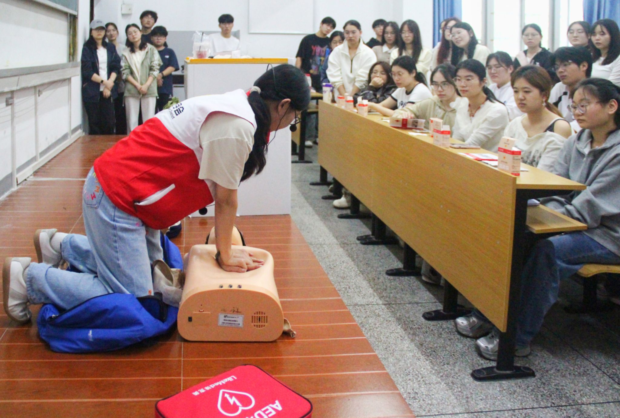 10月15日下午,beat365亚洲体育官方网站团委、关工委联合大观区卫健委、红十字会,于10月15日下午在314、315教室开展应急救护技能培训课程。旨在普及应急救护知识、提升师生应对突发事件的急救能力,近200名学生参加活动。