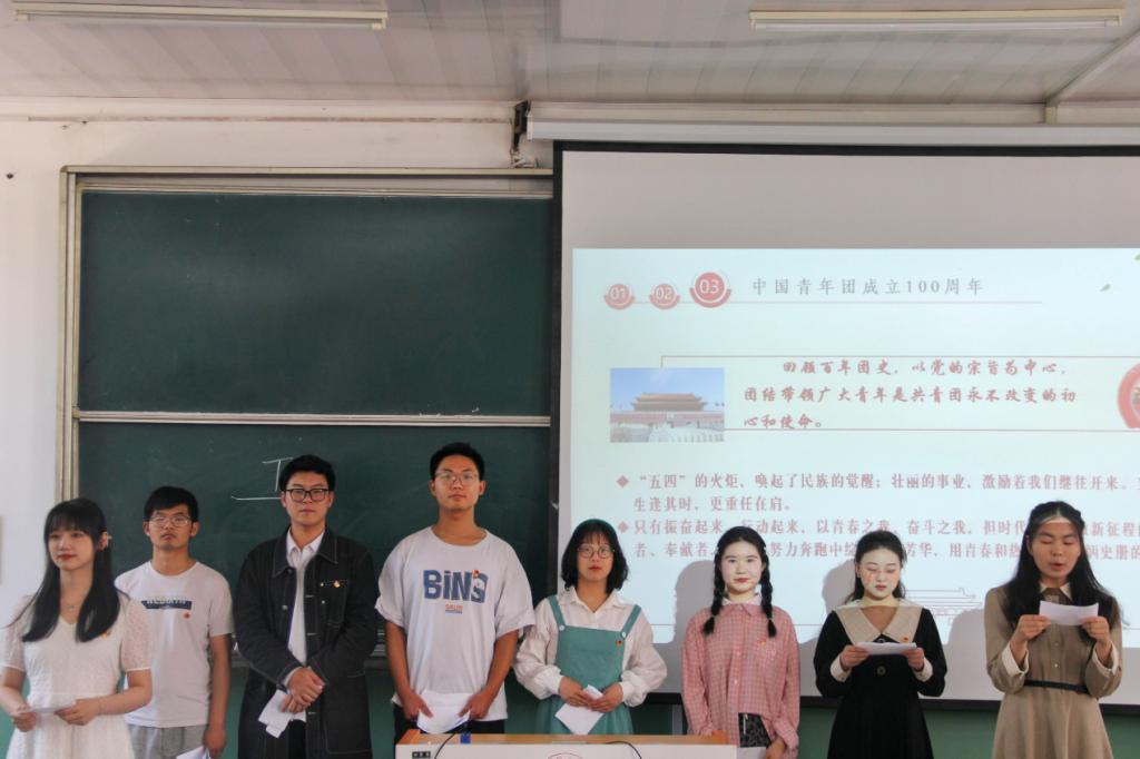 本次学习活动设有团史宣讲、团史朗诵、团史答题和团史观影四个环节。活动伊始,团员代表们一起集中观看了安庆师范大学“五四”表彰大会现场直播,一起学习感悟当代青年大学生如何践行“五四精神”。