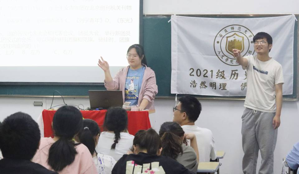 “这题我会!”“答错了,有点可惜。”“原来少年中国学会是五四时期出现的历史最久的青年社团呀。”……5月5日,beat365亚洲体育官方网站历史学2021级1班组织了“团史竞赛,我对有奖”的答题活动,以独特的形式诉说对团组织的热爱,向共青团百岁生日献礼。