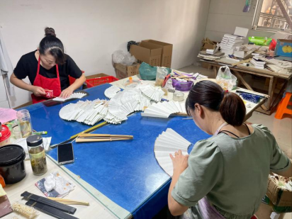 在明德竹扇展馆中,企业第六代传人王亚凌为介绍,目前明德折扇的品牌已经成功走向全国,甚至被世界认可。每年有近90%的折扇出口到日韩,欧美地区。其产品设计先后获得“中国驰名商标”“中国制扇名家企业”“安徽省非物质文化遗产”“国家文化重点出口企业”、“安徽老字号”等荣誉。明德折扇也在与世界接轨,例如与爱马仕、优衣库等国外知名品牌的合作,联名发行了企业主题的折扇。在北京冬奥期间,明德折扇也设计了多款冬奥主题折扇,为宣传冬奥贡献了一份力量。明德折扇也积极与周边学校开展非遗文化进课堂等活动,邀请学生来到工厂参观并参与扇面绘制,帮助他们进一步了解和学习非物质文化遗产。