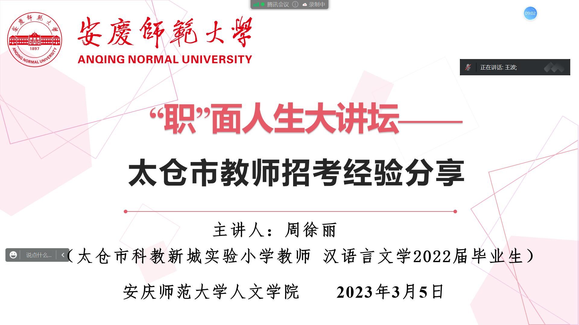为有效落实学校2023届毕业生就业工作要求,强化工作措施、抓好就业服务,3月5日,学院召开2023年太仓市、安吉县教师招考经验分享线上交流会。此次会议由beat365亚洲体育官方网站党委副书记王波主持,邀请了2021届毕业生董雪奇,2022届毕业生周徐丽、章颖三位招考成绩优异的教师分享备考经验、为同学们答疑解惑,2023届毕业生百余人参加了会议。