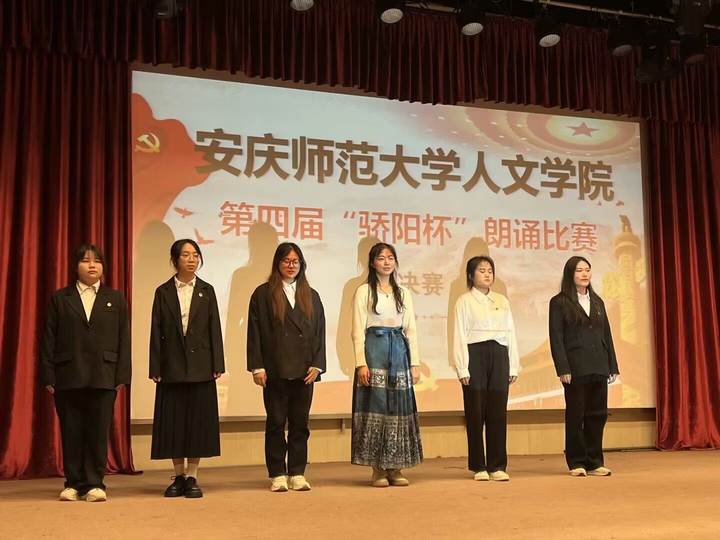 决赛环节是六名选手在现场随机抽取稿件,并根据现场配乐选择合适的朗诵方式,依据抽取稿件编号上场。决赛独特的地方在于稿件不限于现代诗歌,有古诗、歌曲节选、名著节选等稿件内容。六名选手在短暂的时间里为观众呈现出了精彩的成果,赢得了现场观众的热烈掌声。最终,李琪获得一等奖,胡思睿、高孟尧获得二等奖,刘锦怡、程甜甜、张思雨获得三等奖,邵月、王颖等六名同学获得优秀奖。