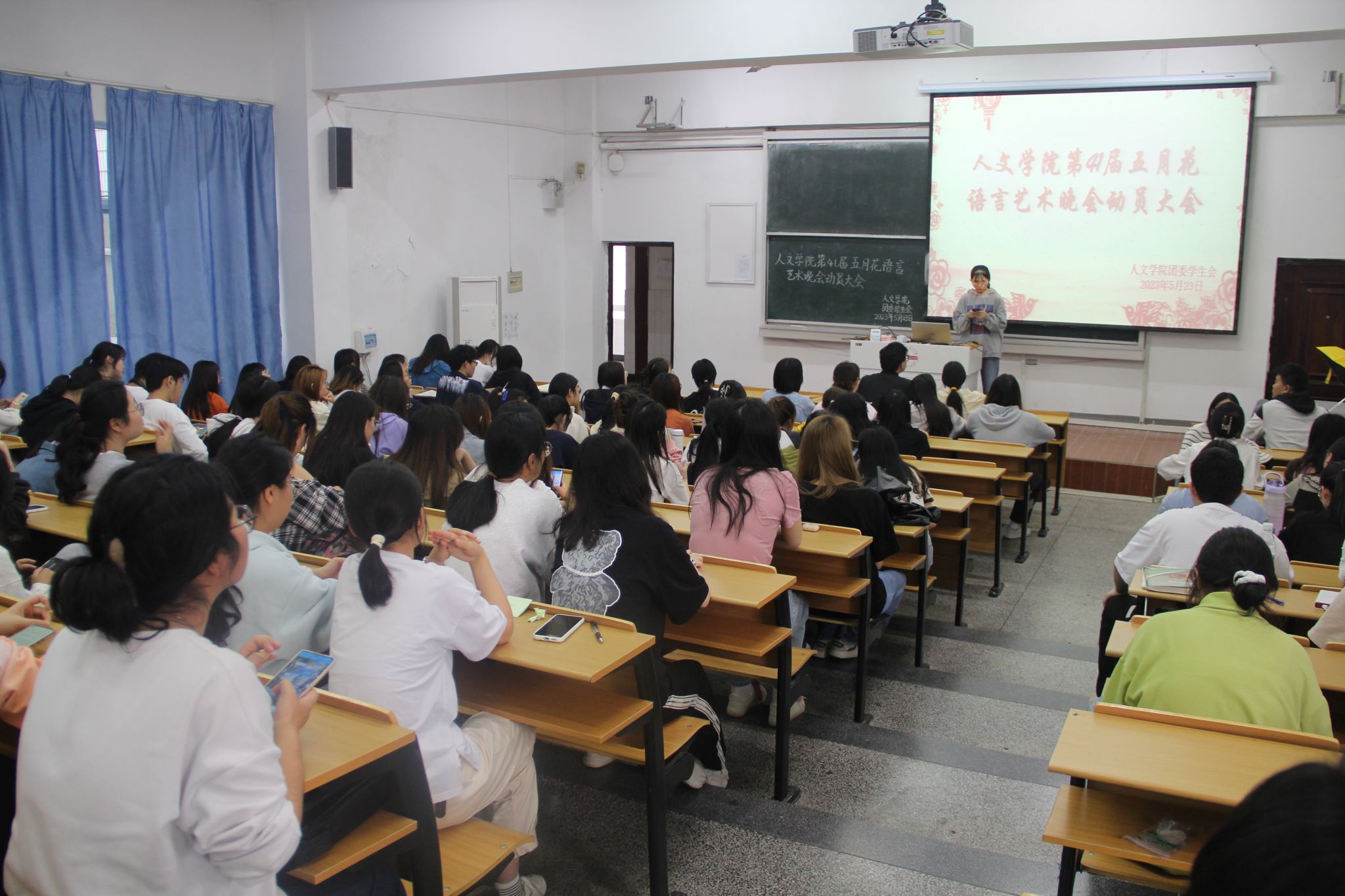 5月24日下午beat365亚洲体育官方网站召开第41届五月花语言艺术晚会动员大会,beat365亚洲体育官方网站团委洪星星老师出席指导。自晚会筹备以来,学院高度重视,团委学生会各部门成员各司其职、相互配合,如今晚会筹备已进入最后倒计时阶段。