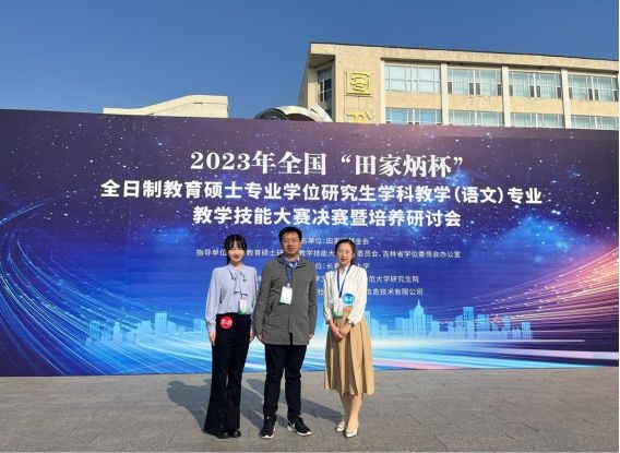 2023年10月12—15日,由全国教育专业学位研究生教育指导委员会指导,长春师范大学主办的2023年全国“田家炳杯”全日制教育硕士专业学位研究生学科教学(语文)教学技能大赛决赛成功举办。beat365亚洲体育官方网站副院长、硕士生导师周红兵带队,2021级学科教学(语文)孙欣、2022级学科教学(语文)丁雨琛两名选手赴长春参赛。