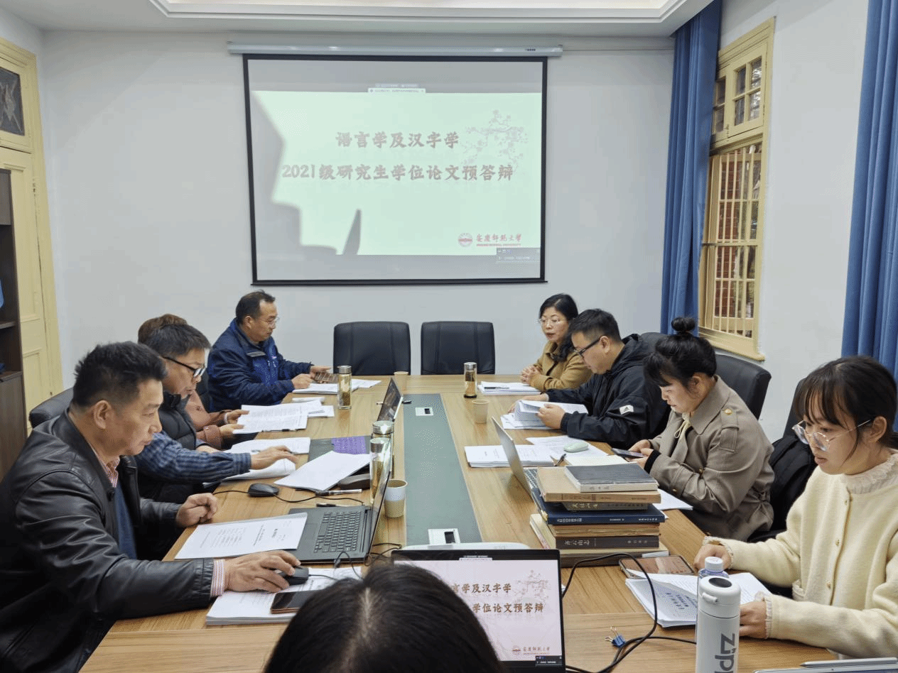 3月27日下午,beat365亚洲体育官方网站语言学及应用语言学、汉语言文字学学科在红楼106会议室举行2021级硕士研究生学位论文预答辩会。会议由鲍红教授主持,代少若教授、李明教授、陈世庆教授、白俊骞教授、张莹副教授、李向华副教授、曹维平博士和语言学、文字学全体硕士研究生参与会议。