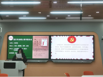 本次读书会分为主讲人分享阅读体会、学生讨论交流、指导老师评议三个环节,阅读书目为《红星照耀中国》。会始,四位主讲人或根据自身经历,或结合历史,对《红星照耀中国》文本进行了解读。方妍同学围绕《红星照耀中国》中的新闻价值、文学价值、传承与弘扬优秀革命文化三方面,阐释《红星照耀中国》对学生的意义,强调了这本书在立德树人方面的重要作用。陈丽霞同学介绍了《红星照耀中国》的真实性和人物描写的文学性,突出了红军的革命乐观主义精神。凌梦同学主要就《红星照耀中国》中的新闻价值、文学价值和思想价值发表看法,强调作者斯诺的记录让史实更加生动具体,激励专业研究生要在日常学习的过程中不畏困难、努力前进。余悦同学提出《红星照耀中国》在人道主义层面的价值,指出在当下语文教学中要引导学生与文本、作者对话,学会产生情感共鸣。随后,同学们就主讲同学的阅读分享展开了激烈的讨论和交流。