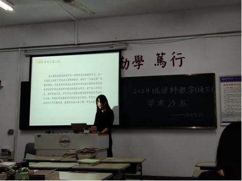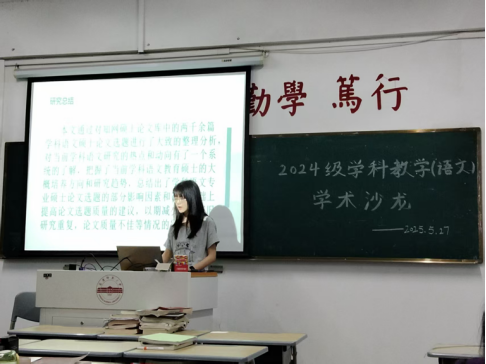 5月27日,2024级学科教学(语文)班级的学术沙龙活动在教学楼403教室顺利举办。本次活动聚焦语文教育领域热点话题,2024级学科教学(语文)专业硕士研究生李子萱等四位同学带来精彩汇报,与谈人2024级学科教学(语文)专业硕士研究生任星雨等同学发表见解,指导老师冯慧敏老师给予专业点评与指导,学科教学(语文)专业全体研究生参加了此次沙龙报告。