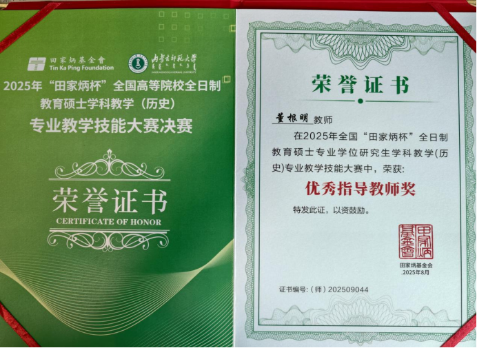 2025年8月22日至25日,由“田家炳杯”全日制教育硕士专业学位研究生教学技能大赛专家委员会指导、“田家炳教育基金会”冠名,内蒙古师范大学主办的2025年“田家炳杯”全国高等院校全日制教育硕士学科教学(历史)专业教学技能大赛决赛在呼和浩特举行。本次决赛汇聚了全国84所院校160余名全日制学科教学(历史)专业硕士研究生,搭建起高校间教学实践交流的优质平台。beat3652023级学科教学(历史)研究生齐扬、魏爽参赛,beat365亚洲体育官方网站葛俊超博士带队。