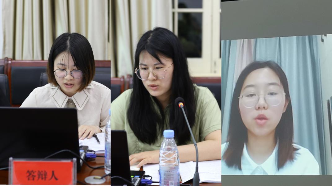 答辩会开始前,答辩主席向参加答辩的硕士研究生介绍了答辩流程、注意事项和答辩要求。三位研究生按照抽签顺序,就自己论文的选题背景及意义、研究内容及方法、研究工作及结果、论文的创新点及特色等方面进行了论文PPT展示汇报。答辩委员会成员针对每位同学的毕业论文进行了提问,答辩同学出色地对提出的问题进行了一一回答,并表示将对论文进行进一步修改和完善。经过答辩委员会评议和无记名投票表决,一致同意参加答辩的3位同学的硕士学位论文通过答辩并建议授予硕士学位。