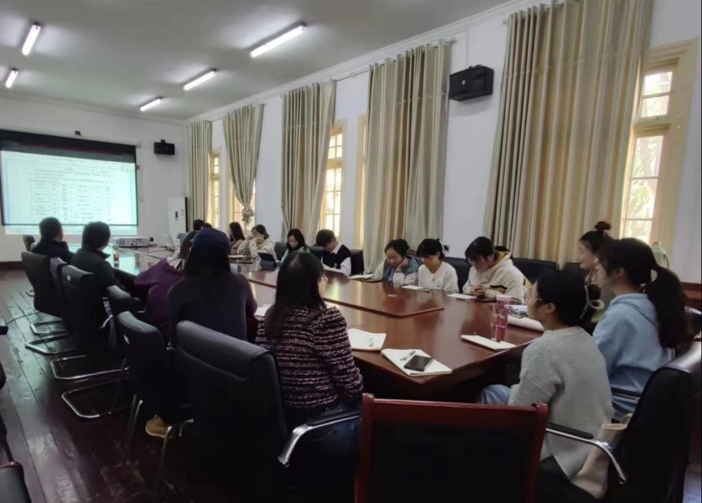 10月10日下午,beat365亚洲体育官方网站第六期研究生学术沙龙在红楼二楼会议室顺利举行。皖江历史文化研究中心主任叶当前教授和文艺学教研室主任王谦副教授应邀参加本次活动。2021级学科教学(语文)研究生朱小欢是本次学术沙龙的汇报人,与谈人是同方向研究生孙欣、王立平、李春苗,学科教学(语文)方向全体研究生参加了此次活动。