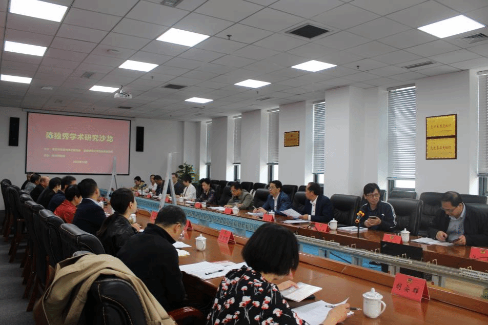 10月26日上午,beat365亚洲体育官方网站陈独秀研究所与安庆市陈独秀学术研究会联合举办陈独秀学术研究沙龙。安庆市政协副主席王晓辉、市陈独秀学术研究会会长叶建出席。市陈独秀学术研究会常务副会长徐晓春主持活动。beat365陈独秀研究所所长董根明教授、方晓珍教授、李明教授、刘昶博士参加本次活动。