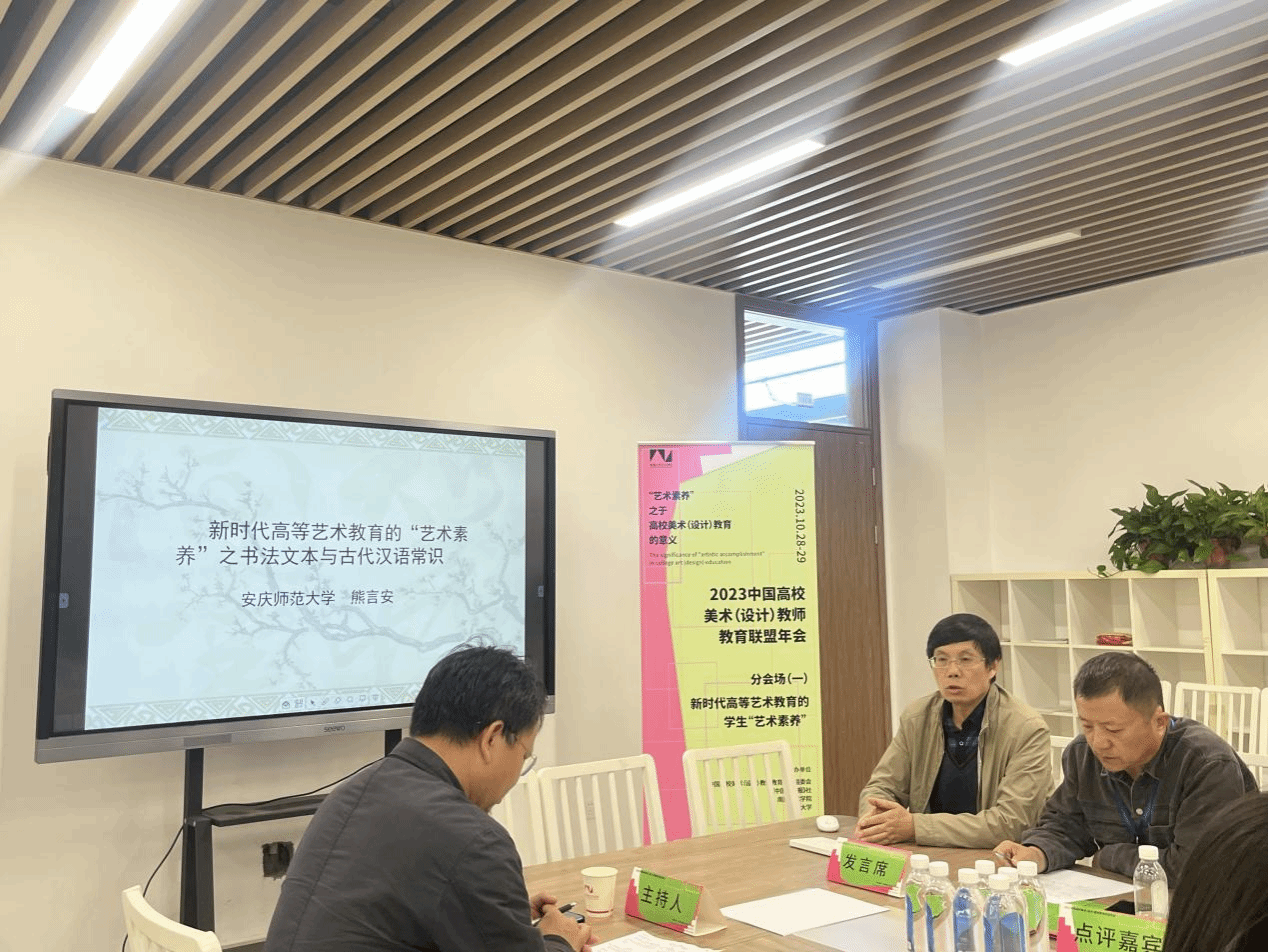 在分组讨论中,beat365熊言安副教授作题为《新时代高等艺术教育的“艺术素养”之书法文本与古代汉语常识》的专题报告,得到与会专家的好评。熊言安老师多年来坚持中国古代文学与书画艺术融通研究,并兼顾书法创作和旧体诗写作,逐渐形成了个人治学风格,获得了丰硕成果,得到了本专业和书画专业一些同行的认可。