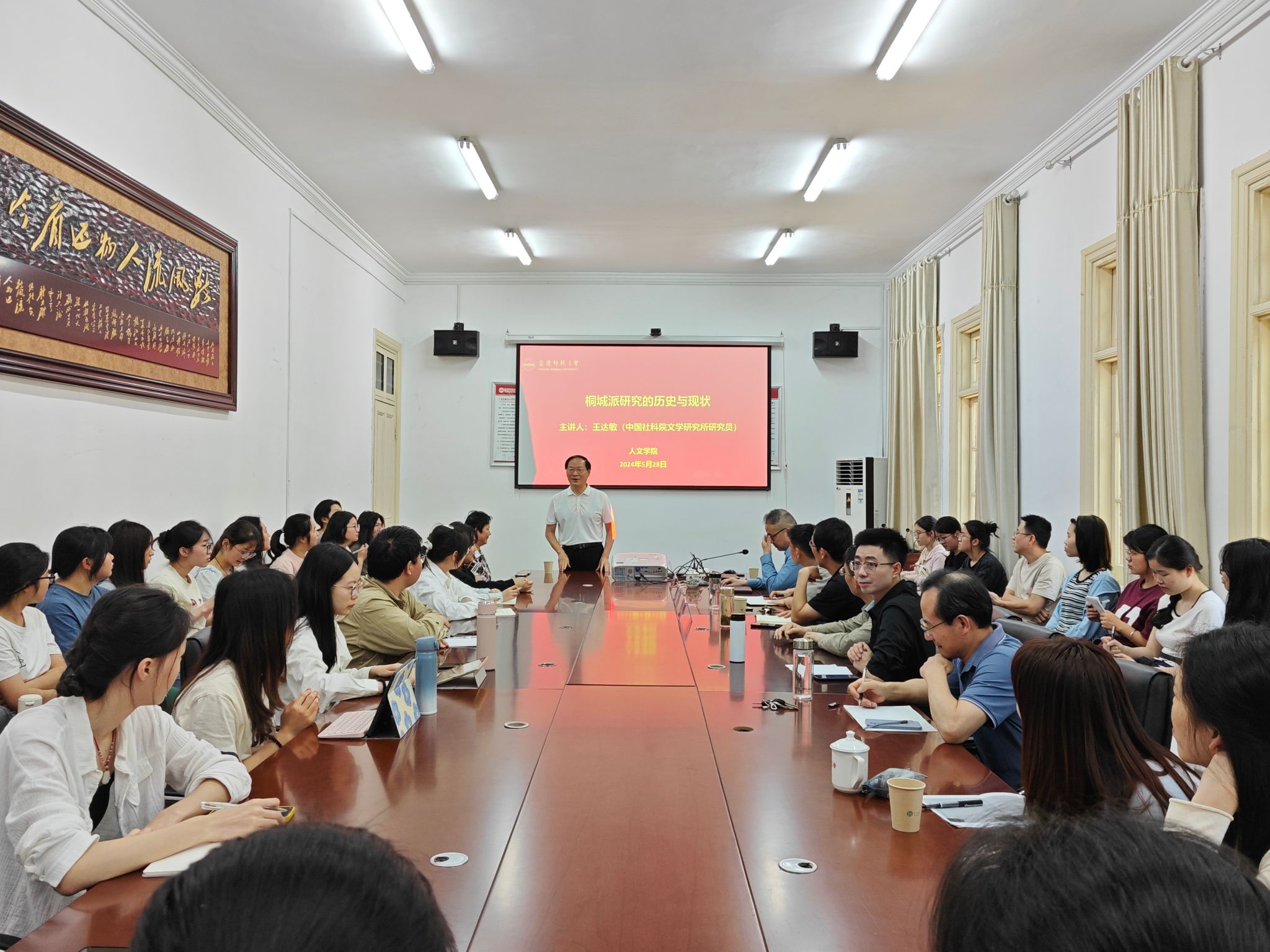 5月28日下午,中国近代文学学会副会长、中国古代散文学会副会长、安徽省桐城派研究会副会长、中国社科院研究员、安徽大学特聘教授王达敏应邀做客敬敷人文讲坛,主讲题为“桐城派研究的历史与现状”学术讲座。本场讲座由beat365亚洲体育官方网站院长汪孔丰教授主持,皖江文化数字化保护与智能处理实验室执行主任童岳敏教授、副主任徐文翔副教授担任与谈人,beat365部分教师及研究生、本科生参加了此次活动。