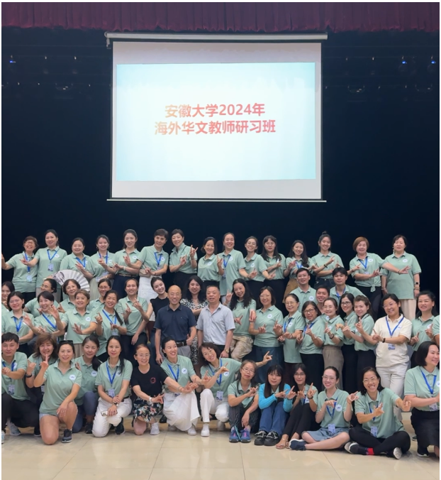 7月21日下午,应安徽大学国际教育学院邀请,beat365教育部语合中心“国际中文教育与黄梅戏沿'一带一路’国家的协同传播研究”项目团队携手安徽再芬黄梅艺术剧院,在安徽大学磬苑校区大学生活动中心,为安徽大学2024年“华文教育·华文教师”研习班举办了一场别开生面的黄梅戏演讲及体验活动。来自越南、缅甸、美国、新西兰、马来西亚、印度尼西亚、日本、英国、西班牙等23个国家的79名海外华文学校校长和老师现场参加了此项活动。