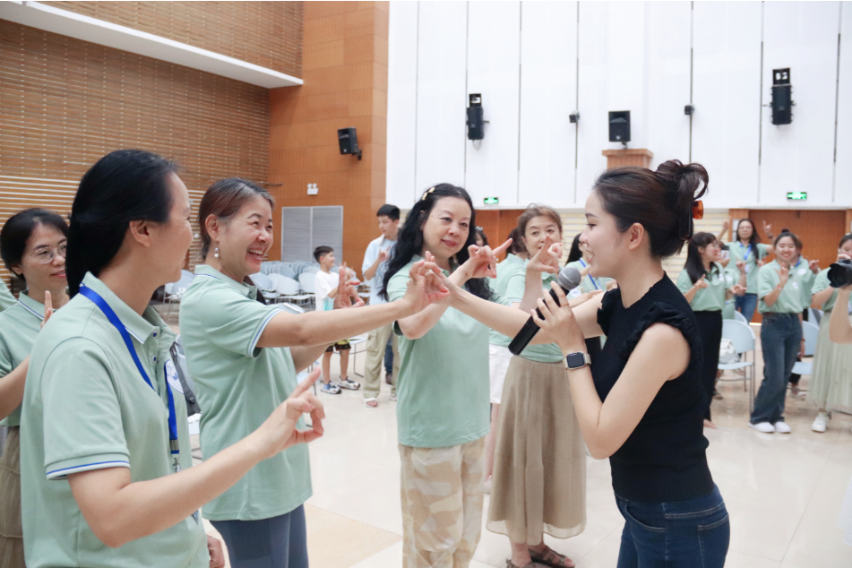 在互动体验环节中,安徽再芬黄梅艺术剧院国家二级演员江李汇老师为海外华文教师们讲解示范了《天仙配》经典唱段《夫妻双双把家还》的戏曲身段。她从基本的步伐、手势到情感的表达,亲自指导华文教师们搭档演绎这一经典选段。随后,江老师还向大家展示了戏曲水袖的作用与魅力。她通过一系列精彩的水袖表演,如甩袖、绕袖、翻袖等,展示了水袖在不同剧目、不同情境下的运用技巧与注意事项,使大家对戏曲艺术有了更深入的了解。