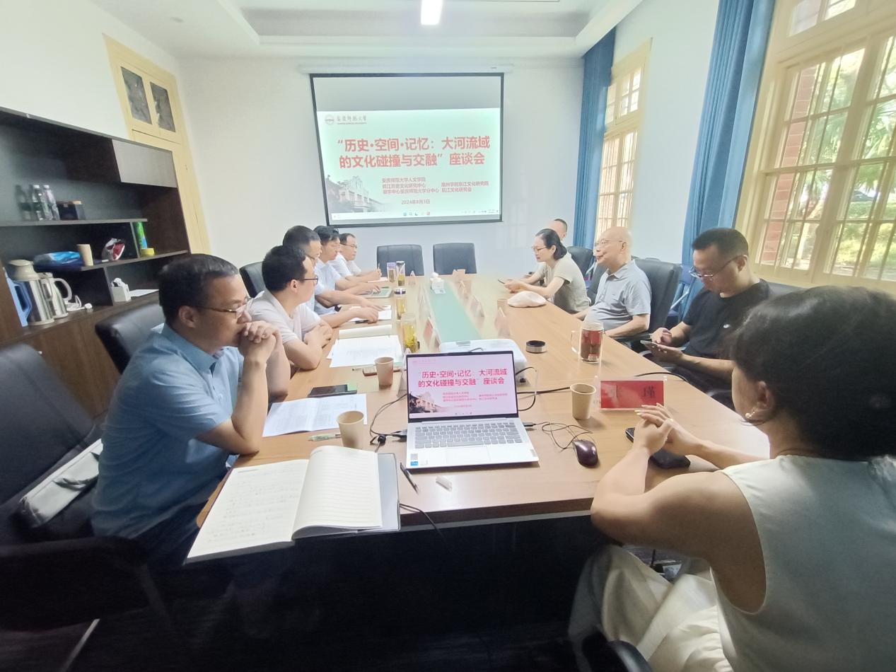 8月3日上午,“历史•空间•记忆:大河流域的文化碰撞与交融”座谈会在beat365菱湖校区红楼106会议室召开。本次活动由beat365亚洲体育官方网站、皖江历史文化研究中心、惠州学院东江文化研究院、徽学中心安庆师范大学分中心、皖江文化研究会共同主办。著名岭南文化学者、惠州学院东江文化研究院院长关建人先生出席会议;beat365亚洲体育官方网站副院长沈志富、金松林,皖江文化研究会会长汪军,皖江历史文化研究中心主任叶当前,徽学中心安庆师范大学分中心主任梁诸英等参加了会议。会议由beat365亚洲体育官方网站副院长金松林主持。