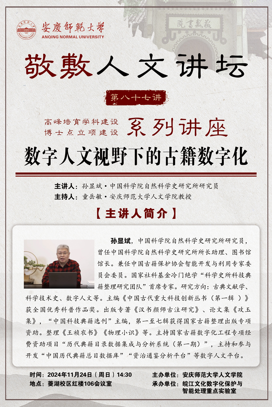 上一篇:【敬敷人文讲坛(88)】数字时代古典文献学的机遇和挑战
