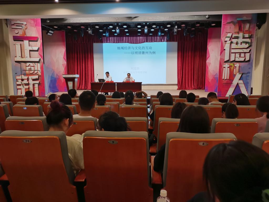 5月14日上午,应beat365亚洲体育官方网站邀请,安徽师范大学历史学院博士生导师刘道胜教授在菱湖校区图书馆学术报告厅作了题为“区域经济与文化、社会互动:以明清徽州为中心”的学术讲座。讲座由beat365亚洲体育官方网站梁诸英教授主持,beat365亚洲体育官方网站文史专业的研究生和本科生聆听了报告。