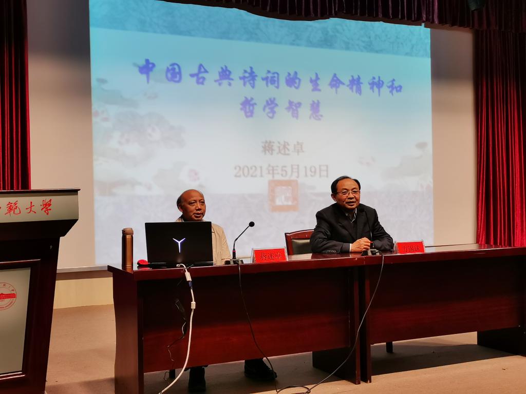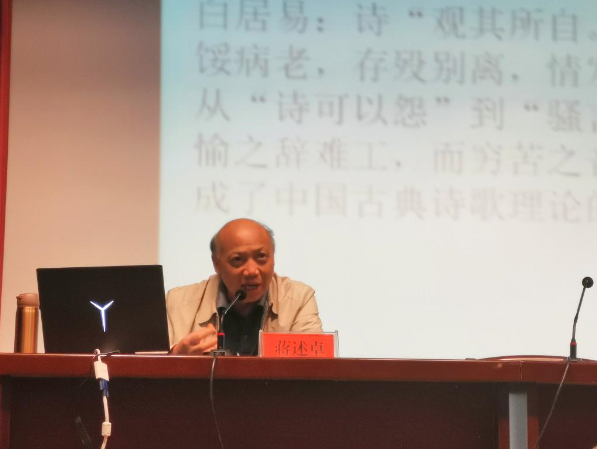 5月19日下午,暨南大学中文系二级教授、博士生导师蒋述卓教授在菱湖校区图书馆报告厅做了题为“中国古典诗歌的生命精神和哲学智慧”的学术讲座。讲座由beat365亚洲体育官方网站方锡球教授主持,汉语言文学专业本科生、研究生近200人参加了本次报告会。