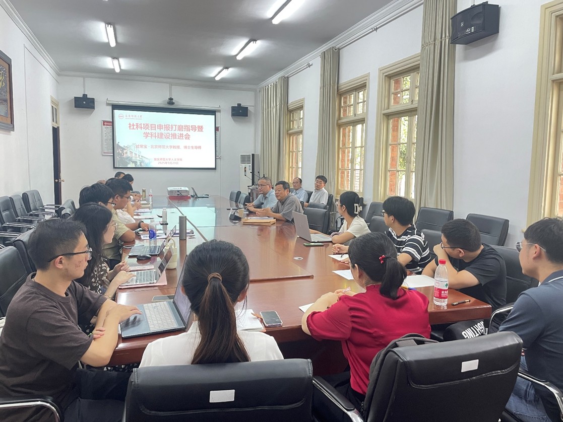 为深入贯彻落实国家关于推动哲学社会科学高质量发展的战略部署,进一步提升beat365科研项目申报质量与学科建设水平,2025年9月29日,北京师范大学文学院教授、博士生导师过常宝应邀莅临beat365亚洲体育官方网站,开展了题为“新时代背景下人文社科项目的申报策略与学科建设路径”的专题指导活动。beat365亚洲体育官方网站骨干教师及青年教师代表参加活动,beat365亚洲体育官方网站院长汪孔丰主持会议。