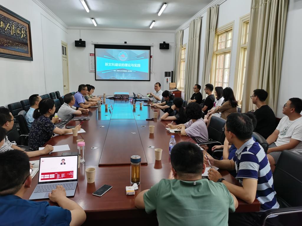 7月12日下午,应beat365亚洲体育官方网站邀请,全国新文科教育研究中心副主任、山东大学人文社科期刊社副社长、《新文科理论与实践》编辑部主任、山东大学特聘教授、二级教授、博士生导师胡友峰作题为“新文科建设的理论与实践”的学术报告。beat365亚洲体育官方网站方锡球教授、黄梅剧艺术学院韩再芬教授、研究生院院长华秀梅教授以及学院教研室主任、学术骨干、年青博士参加讲座。beat365亚洲体育官方网站副院长汪孔丰教授主持了此次讲座。
