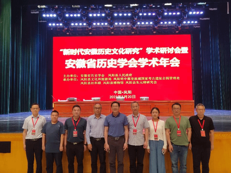 5月19日至21日,“新时代安徽历史文化研究”学术研讨会暨安徽省历史学会2023年学术年会在安徽凤阳县召开。本次年会由安徽省历史学会、凤阳县人民政府主办,凤阳县文化旅游局、凤阳明中都皇故城国家考古遗址公园管理处、凤阳县社科联、凤阳县博物馆、凤阳县朱元璋研究会承办。省社科联党组书记、常务副主席李兵,秘书长、一级调研员韩修良,省历史学会会长李琳琦,凤阳副县长张艳,南京工业大学郭华瑜教授,南京大学夏维中教授等出席会议。来自省内外十余所高校、科研院所、出版单位以及凤阳本地学者160余人参会,其中beat365近十位教师应邀与会。