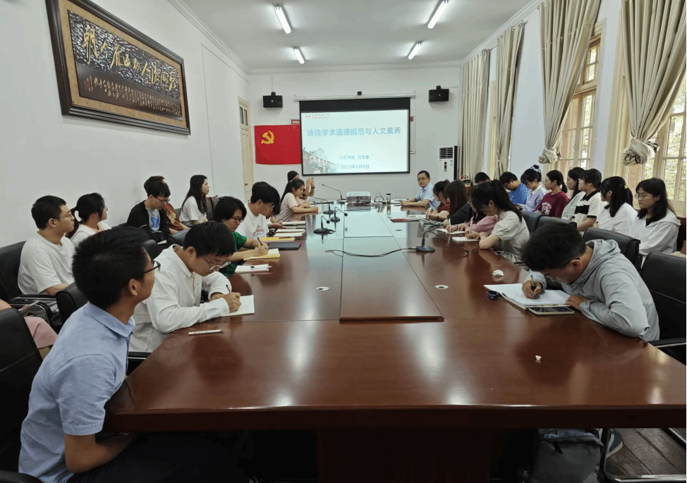 6月9日下午,为推进研究生学风建设,培养研究生严谨、踏实、创新的学术作风,副院长沈志富在红楼二楼会议室作了题为“谈谈学术道德规范与人文素养”的专题讲座。beat365各专业研究生、部分本科生参与了此次活动。
