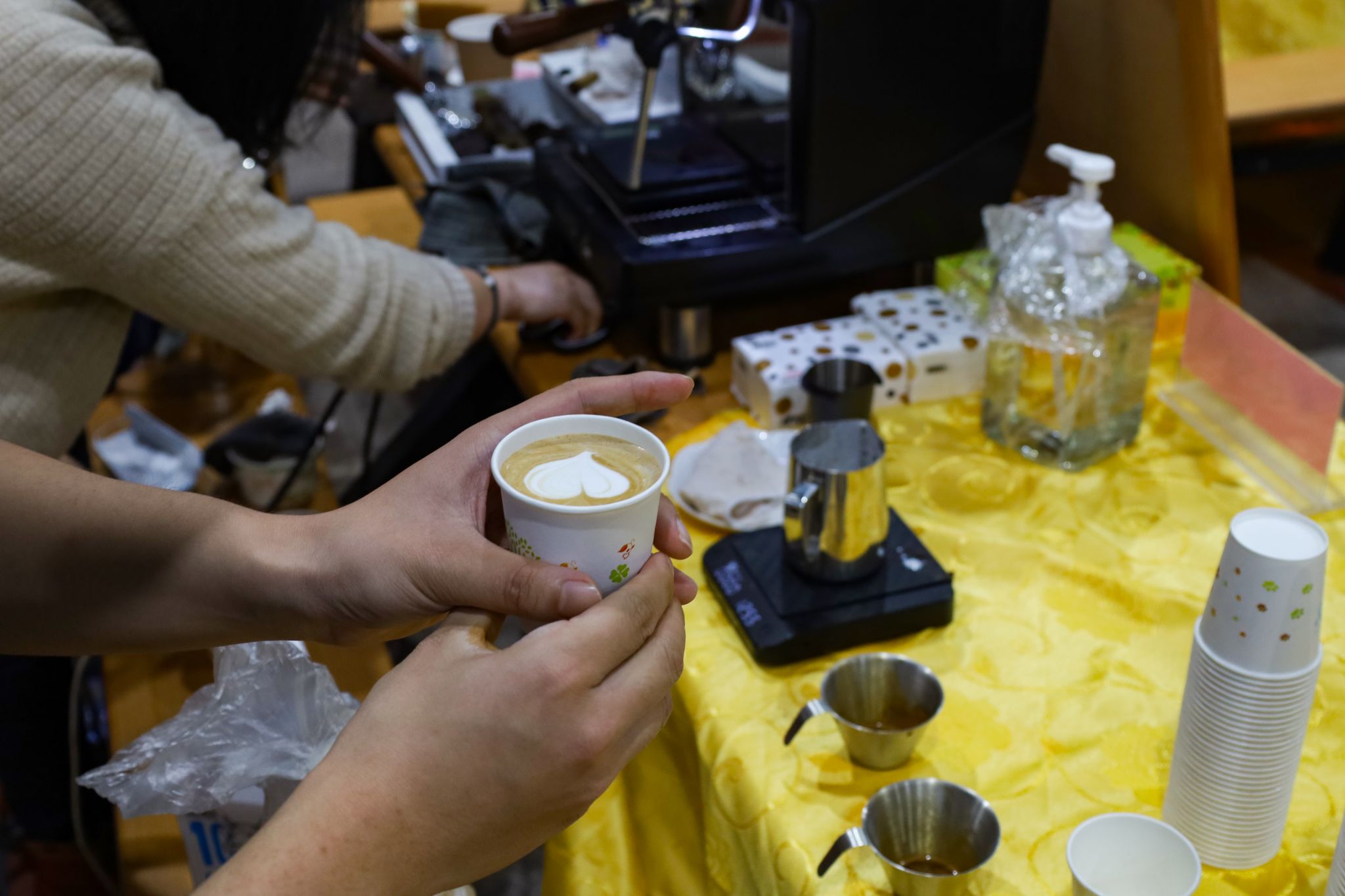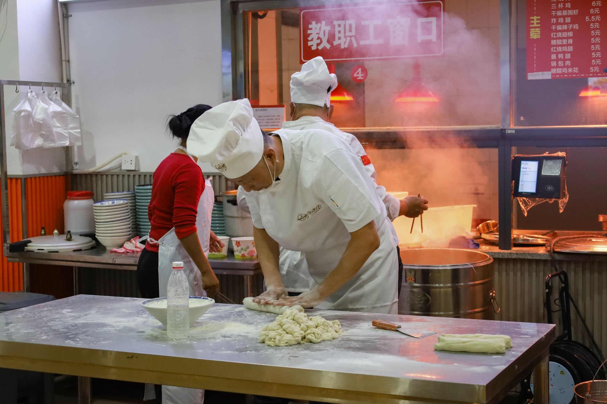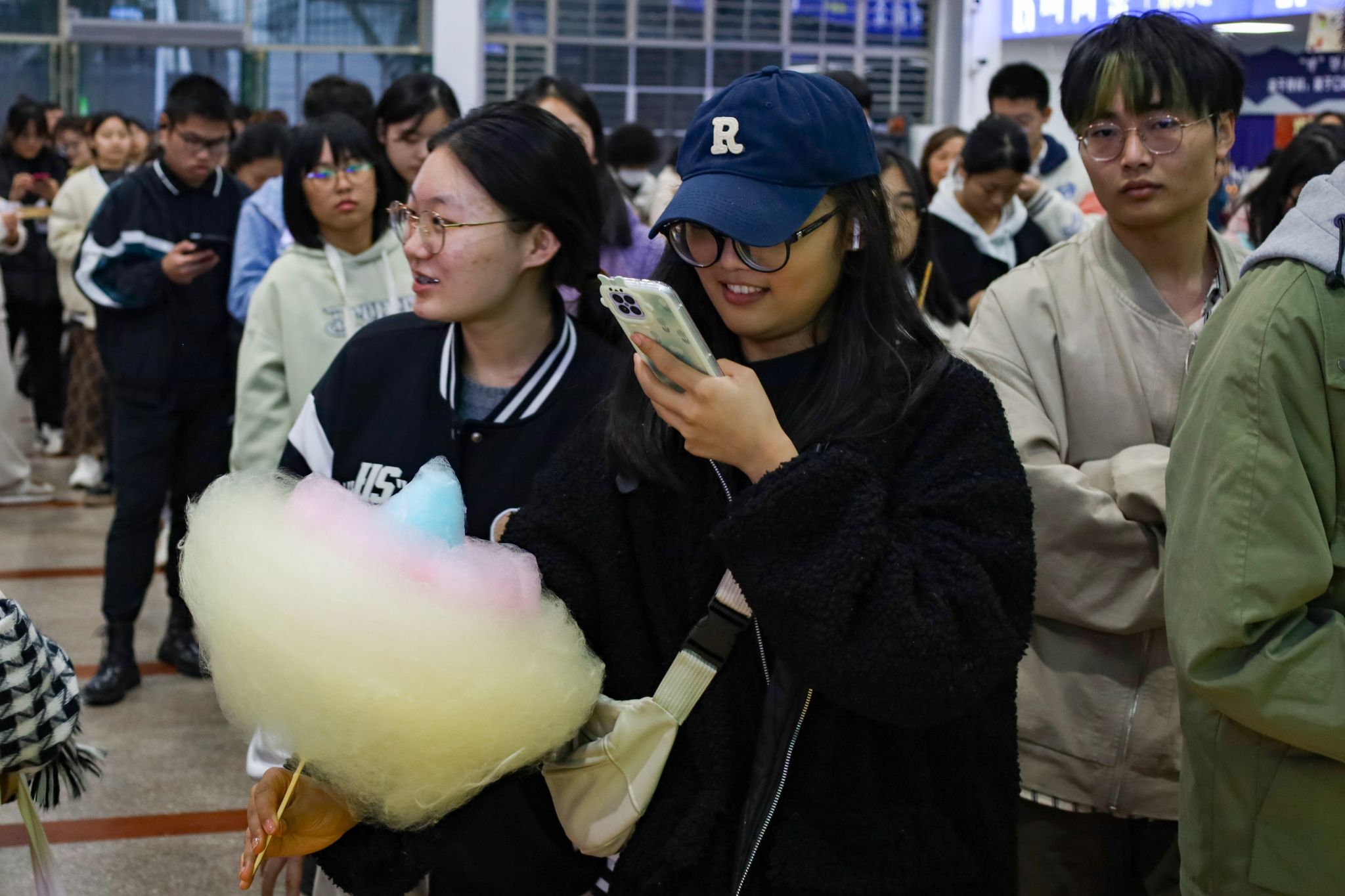 拉面、糖画等中国传统非遗美食成功刷屏了在场师生的朋友圈,成为现场的一大亮点。糖画师傅早早地熬好糖浆,缕缕金黄糖丝自汤勺中泄下,随着师傅快速地移动手肘,一只栩栩如生打鸣的公鸡便在他手下诞生。负责制作棉花糖的阿姨也在准备中,各色的棉花糖自炉中跳出,阿姨手握一根竹签,在炉内转动,一只彩色小兔便已成形。拉面师傅表演着独家绝技,只见胖墩墩的面团在他的双手中上下舞动拉扯,变成了细长的面条,下入锅中,袅袅白雾给寒冬中beat365亚洲体育官方网站的学子送去“温暖”。