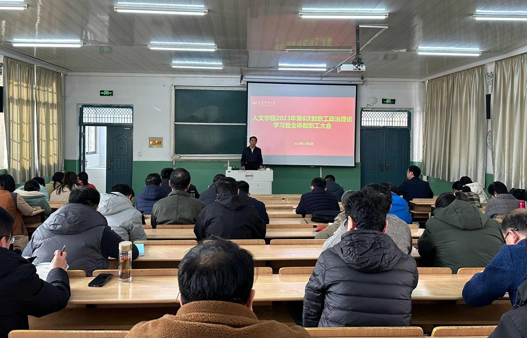 12月6日下午,beat365亚洲体育官方网站在菱湖校区理二阶教室召开2023年第8次教职工政治理论学习会,深刻学习领会习近平总书记对宣传思想文化工作作出的重要指示和全国宣传思想文化工作会议精神,学习韩俊在省委理论学习中心组学习会议上的讲话精神等内容。学院领导班子成员出席会议,全体教职员工参加了学习会。