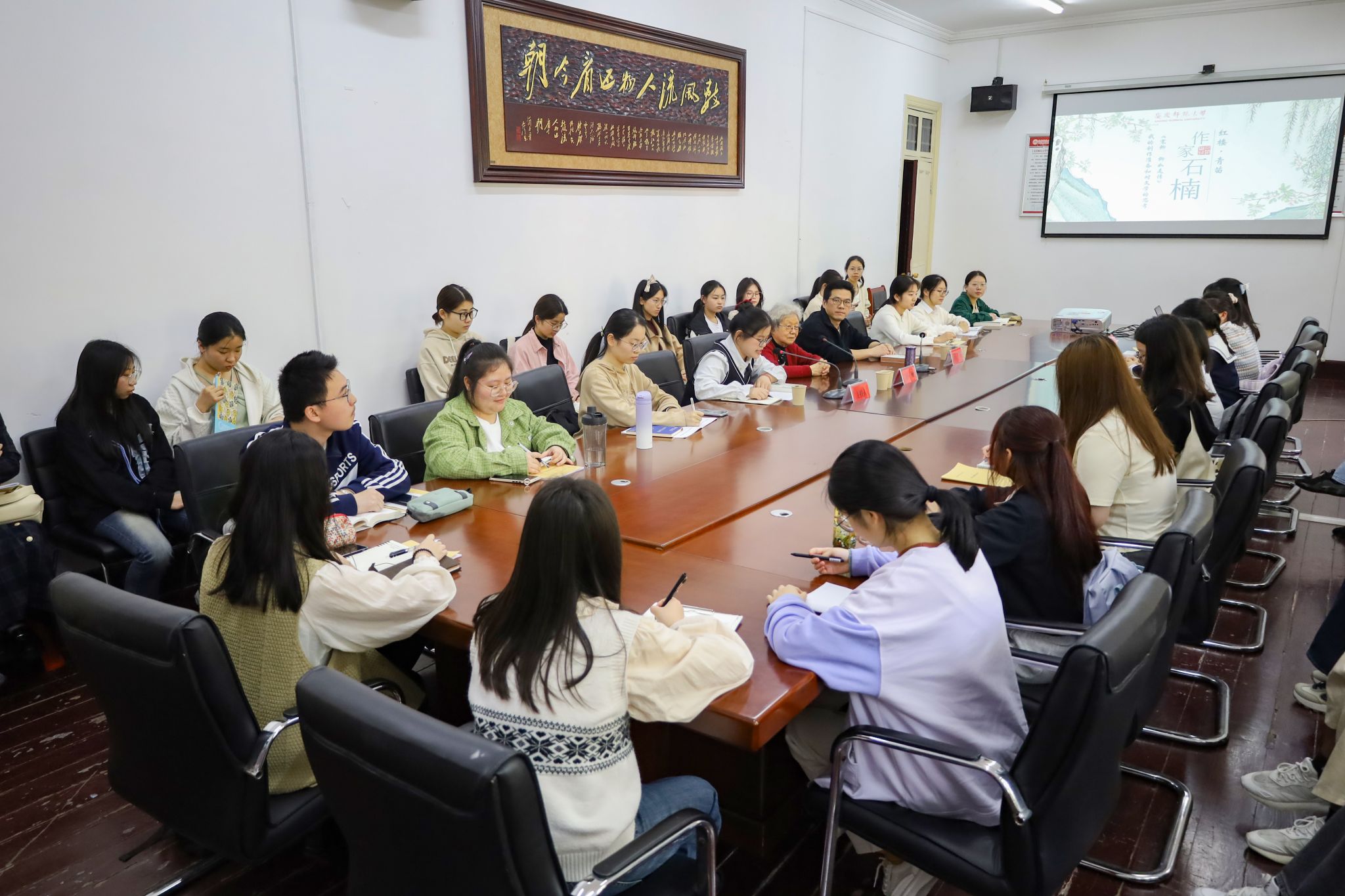 活动伊始,石楠老师与学生们分享了新作《寒柳:柳如是传》创作背后的故事。在她看来,创作这本书是为了歌颂女主人公战胜苦难的精神,人要自立自强,不屈服于苦难,从一部优秀小说中,能听到时代的脉搏,历史的足音,感受到人性的光辉和人性丑恶。