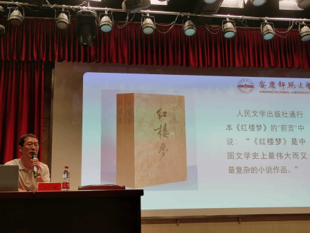 “安庆师范大学菱湖校区校园内部整体布局整洁美观,环境优美,富有人文气息。”安庆七中高一(七)班的唐钟恺是文科实验班的学生,从小便对《红楼梦》有着浓厚的兴趣。他表示:“徐文翔教授的讲座令我受益匪浅,我从中了解到《红楼梦》的叙事结构呈网状式,故事情节错综复杂,有助于自己以后对‘红学’的深入学习研究”。