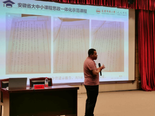 紧接着第二场呼应时下热点——大中小课程思政一体化问题。“安庆在哪里?”“你是安庆哪里人?”……随着一系列的发问,beat365亚洲体育官方网站讲师、硕士研究生导师郝佩林博士从档案史料的独特视角,以档案展示的形式作了《档案中的安庆新中国史图像》主题讲座,向七中师生们直观地呈现出安庆工商业社会主义改造的历史。