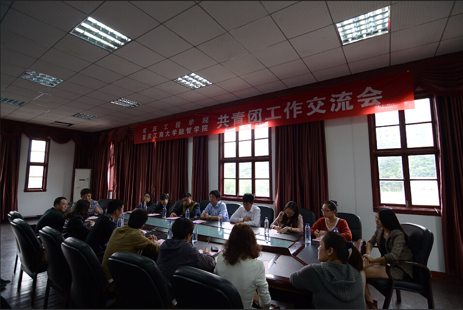 (通讯员:罗雅心 张晓琳)一朝共青人,一生共青情。2014年10月30日13:40,伴着秋日的凉风,重庆工程学院与我院共青团交流会在我院行政楼三楼会议室正式开始。重庆工程学院团委黄涛书记、各分团委书记与我院团委副书记李刚、各系团总支负责人、团委老师马凌凤、会计系专职辅导员谭白冰以及我院各学生组织代表共同参加了本次交流会。