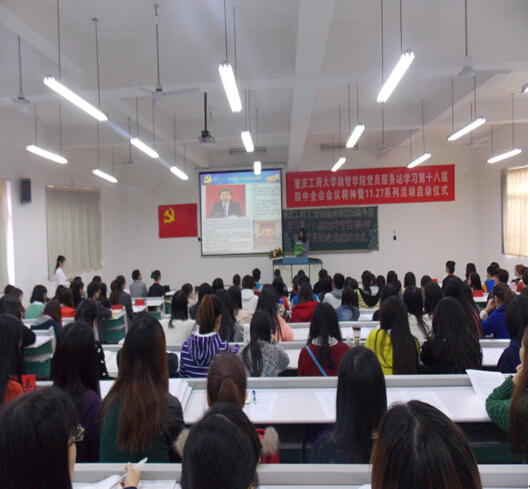 在嘹亮的国歌声中,大会拉开序幕。首先,党员服务站对外交流部副部长苟津铭带领与会者回顾了党的第十八届三中全会的十大看点和四大精神,接着,组织观看了党的第十八届四中全会视频,学生党员代表詹燕玲进一步讲解了本次十八届四中全会会议看点,使广大党员同志、入党积极分子进一步认识到十八届四中全会凝聚了各方面的经验智慧,包含了重大理论和政策创新,凸显了以人为本的执政理念,绘就了中华民族伟大复兴的美好未来。在会议中,还学习到党的十八届四中全会是在我国进入全面建成小康社会决定性阶段和全面深化改革攻坚期召开的一次专门全面推进依法治国重大问题的重要会议,要充分认识党的十八届四中全会的深远历史意义和重大现实意义,认真学习贯彻十八届四中全会精神,关系党和国家工作全局,关系全国各族人民根本利益,关系中国特色社会主义事业长远发展,必须作为一项重大政治任务抓紧抓好。