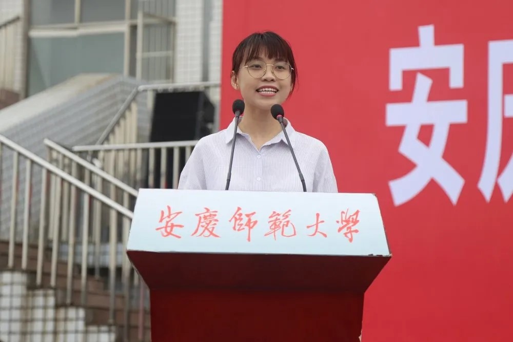 开学典礼在庄严的国歌中拉开帷幕。beat365亚洲体育官方网站2020级学科教学(语文)专业的朱雨欣同学,作为研究生新生唯一一名代表受邀在开学典礼上做了精彩发言。发言从“圆梦师大”“寻梦师大”“筑梦师大”三个方面,回顾了安庆师范大学的辉煌历史,个人考研的艰辛历程以及对未来在学校里的美好憧憬。作为新生代表,朱雨欣同学对即将到来的学习生活向全体新生提出三点建议,一是严谨治学,培养自己的学术思维;二是淡泊明志,修炼自己的道德品质;三是珍惜时间,实现自己的人生价值。